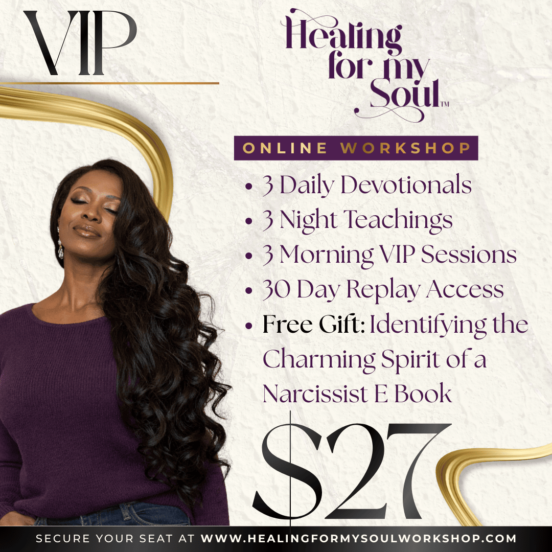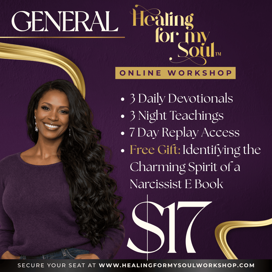 In this workshop you must be ready to be taught & understand the true essence of who you are despite the emotional pain you have endured from a narcissist! This intensive workshop will empower you to address unresolved emotional conflicts within your soul as you begin to experience healing and take your power back.