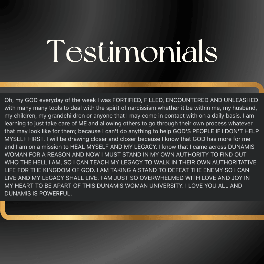 What I teach is not taught in the home & especially in the church. So if you have dealt with the trauma, guilt, gaslighting, cheating, lies, mental torment, and abuse that is silently destroying your soul then this is for you! I am building up an army of women who want to take back their freedom and wage war against the Kingdom of darkness as they walk in their dunamis power & authority.