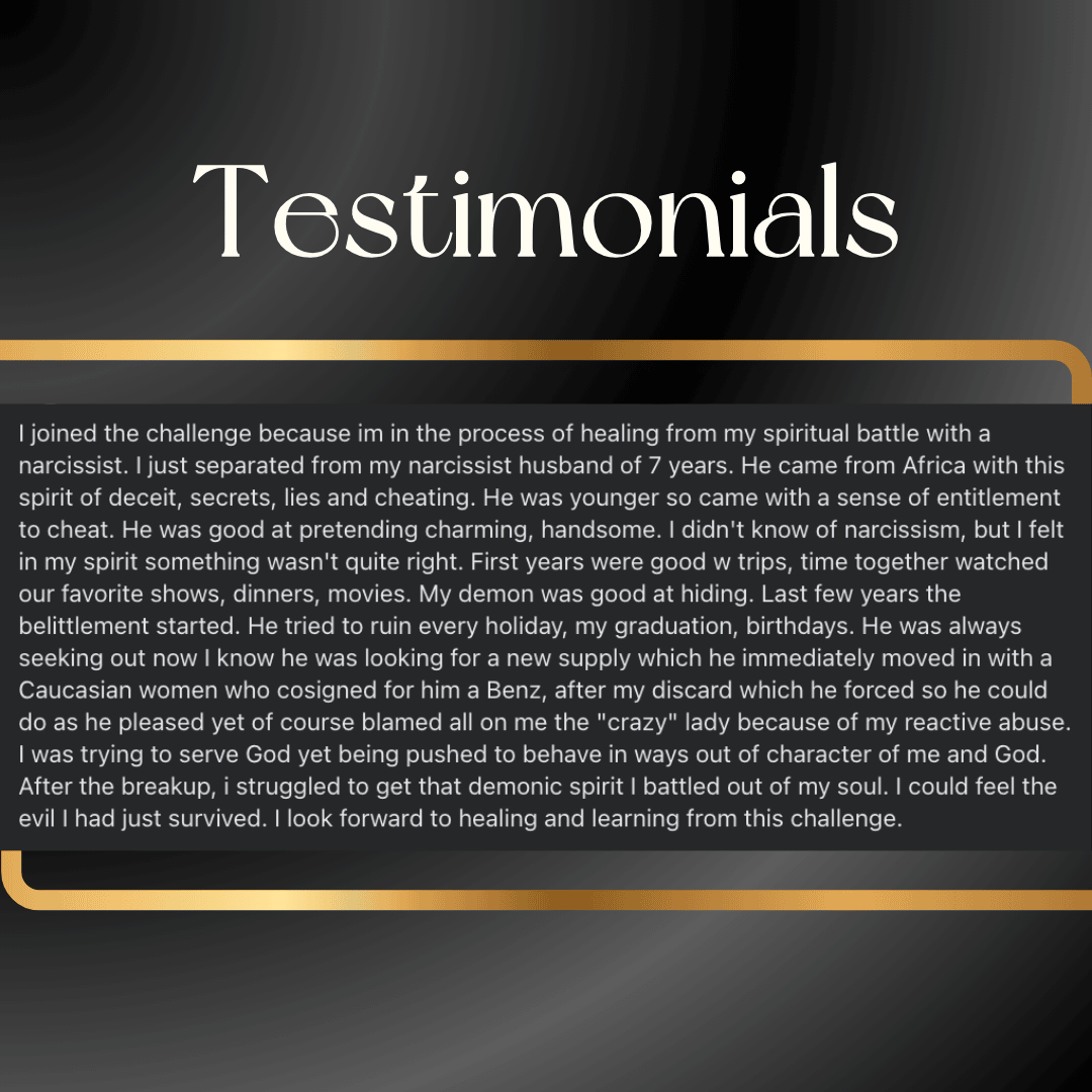 For far too long, women have been silently battling this demonic spirit and it has caused them to not only get weak spiritually, but shatter their confidence and question who they are! I myself have dealt with a narcissistic man in my marriages and have conquered this spirit, with compassion and not losing myself in Christ! I now coach many of my Spiritual daughters on how to win the battle not against the man, but the enemy! 🔥